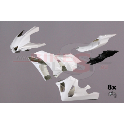 Základní set - (vrchní díl, L+P boční kryt a ALU držák ECU, spodní díl, zadní díl ( horní a spodní část ) 2 x rychloupínák, žáruvzdorná folie )