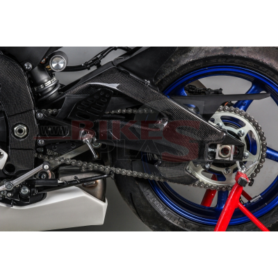 Levý kryt kyvné vidlice + vodící ploutev řetězu
