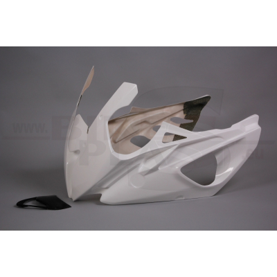 Dodává se v základním materiálu GFK (sklolaminát) má standardně bílou barvu Aral 9003 a je UV stabilní, takže není již třeba lakovat a je připraven rovnou k použití. Vyznačuje se hladkým povrchem. Díry pro uchycení nejsou předvrtané, ale jen naznačené. Na vrchní díl lze použít většina originálních plexi. Proč laminátové kapotáže? Znamenají až 50% váhovou úsporu oproti originálním ABS kapotám a jsou podstatně levnější. Jsou pružnější a lépe se instalují na motocykl.