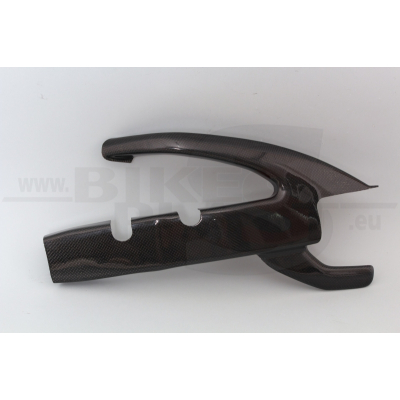 Ochrana kyvné vidlice proti poničení a poškrábání, ať už při pádu nebo demontáži/montáži zadního kola. Krásný estetický prvek na vašem motocyklu. Velice nízká hmotnost. Kevlarem zesílená část, tam kde může dojít ke kontaktu při havárii. Použitý material CFK – transparentní 2x vrstva Carbonu pohledová část + 1x výztuha K-K