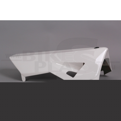 Spodní díl se dodává s již nainstalovanou žáruvzdornou fólií, která chrání kapotáž od tepla z výfukového potrubí a motoru. Výpustný špunt zaručuje bezproblémové vypuštění kapalin ze spodního dílu pro umytí motocyklu. Dodává se v základním materiálu GFK (sklolaminát), má standardně bílou barvu Aral 9003 a je UV stabilní, takže není již třeba lakovat a je připraven rovnou k použití. Vyznačuje se hladkým povrchem. Díry pro uchycení nejsou předvrtané, ale naznačené. Proč laminátové kapotáže? Znamenají až 50% váhovou úsporu oproti originálním ABS kapotám a jsou podstatně levnější. Jsou pružnější a lépe se instalují na motocykl.