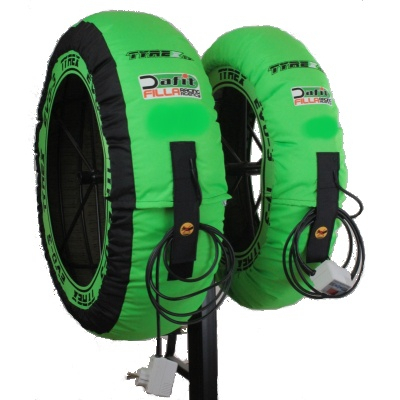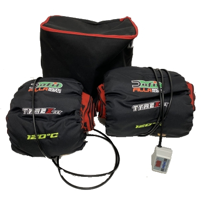 Nahříváky na moto pneumatiky, přední + zadní , cena za pár + brašna také v ceně . S digitální teplotní regulací 0 - 110 °C , která ukazuje momentální teplotu nahřátí pneumatiky.