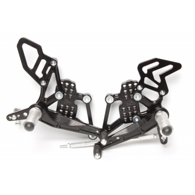 Plně nastavitelný stupačkový set * material dural 7075 T6, kalený * páčky osazeny kuličkovými ložisky Ø 22mm těsněné proti prachu a vodě * pevnostní šrouby TORX 10.9 * 9 možností polohování + nastavitelnost páček podle velikosti bot * speciální odlehčení * černá tvrdá anodizace garantující maximální životnost a garanci proti otěru * exclusivní design.
