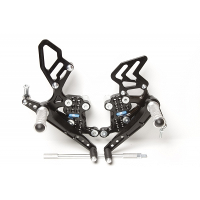 Plně nastavitelný stupačkový set * páčky osazeny kuličkovými ložisky Ø 22mm těsněné proti prachu a vodě * 9 možností polohování + nastavitelnost páček podle velikosti bot * speciální odlehčení * tvrdá anodizace garantující maximální životnost * exclusivní design.