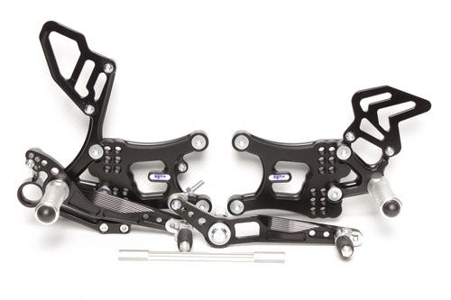 Plně nastavitelný stupačkový set * material dural 7075 T6, kalený * sklopné ukončení řadičky i brzdy * páčky osazeny kuličkovými ložisky Ø 22mm těsněné proti prachu a vodě * pevnostní šrouby TORX * 9 možností polohování + nastavitelnost páček podle velikosti bot * speciální odlehčení * tvrdá anodizace garantující maximální životnost * exclusivní design * dodávka vč.držáku výfuku.