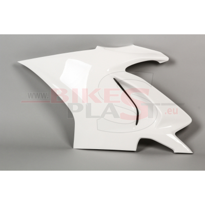 Použitý materiál: GFK - Sklolaminát FLEXI v barvě bílé RAL 9003 + 3 x K-K (kevlar-karbon) výztuhy v místě uchycení. Tepelná odolnost používaného materiálu je 100°C. Sklolaminát má v základním materiálu GFK standardně bílou barvu RAL 9003 a je UV stabilní, takže již není třeba lakovat. Veškeré díly jsou připraveny rovnou k použití. Díry pro uchycení kapotáží nejsou předvrtané, ale naznačené. Proč laminátové kapotáže? Znamenají až 50% váhovou úsporu oproti originálním ABS kapotám a jsou podstatně levnější. Jsou pružnější a lépe se instalují na motocykl