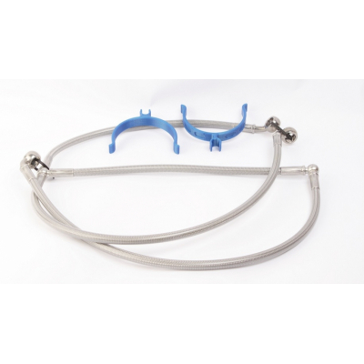 - K přichycení hadic na přední vidlice jsou dodávány plastové dílce, které zamezí volnému pohybu během jízdy.